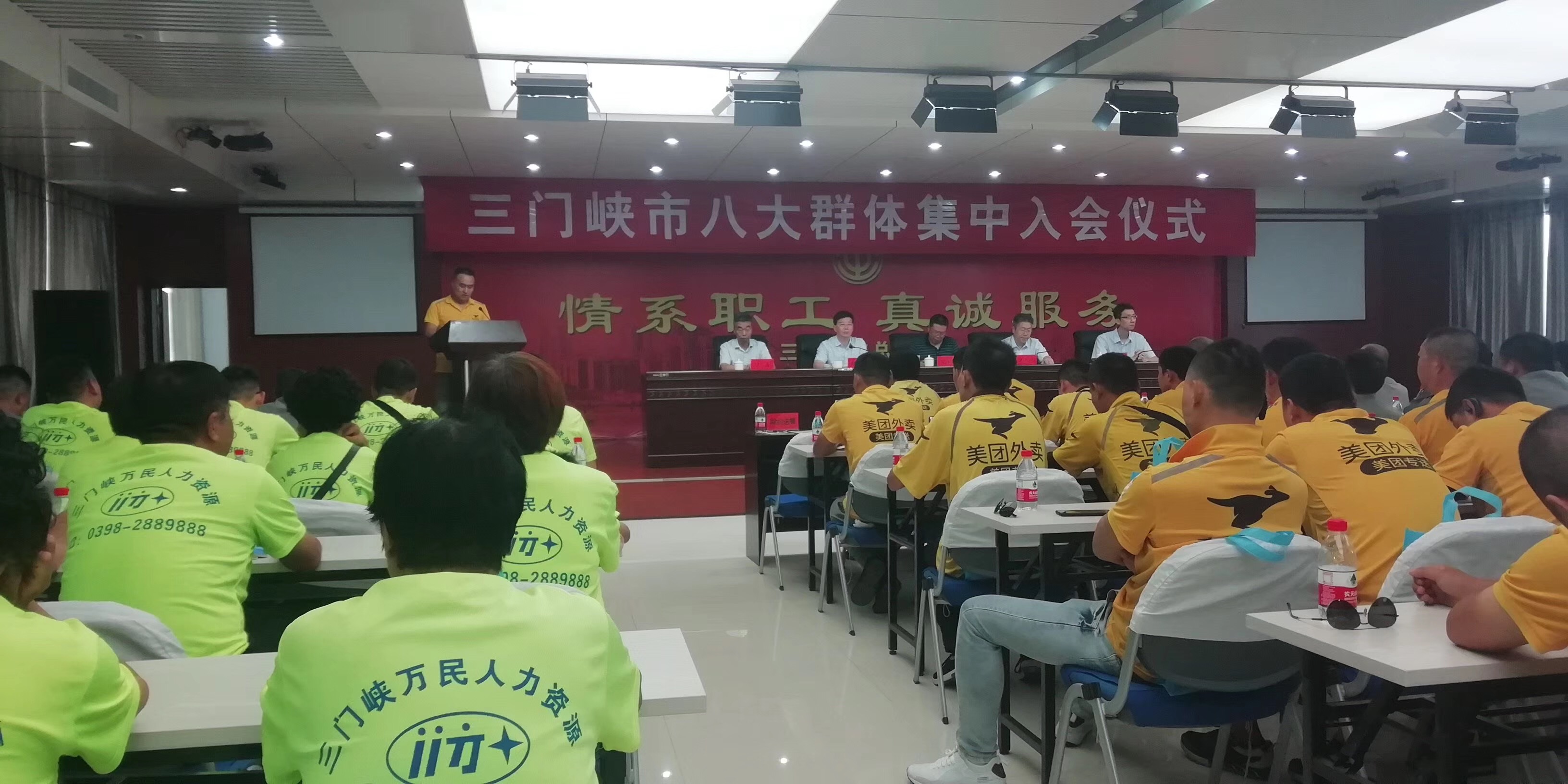 8月1日,三門峽萬民人力資源有限公司總經(jīng)理師萬民帶領(lǐng)40人方隊(duì)按時(shí)參加了三門峽市總工會(huì)舉行的“八大群體”集中入會(huì)儀式。省總工會(huì)基層工作部部長吳志超,省總工會(huì)基層工作部副部長郭凱,三門峽市總工會(huì)黨組書記、常務(wù)副主席胡家群,三門峽市工會(huì)黨組成員、副主席趙敏,三門峽市總工會(huì)副調(diào)研員許波出席儀式。各縣(市)區(qū)總工會(huì)負(fù)責(zé)同志和來自“八大群體”職工代表共計(jì)200人集體參加了儀式。